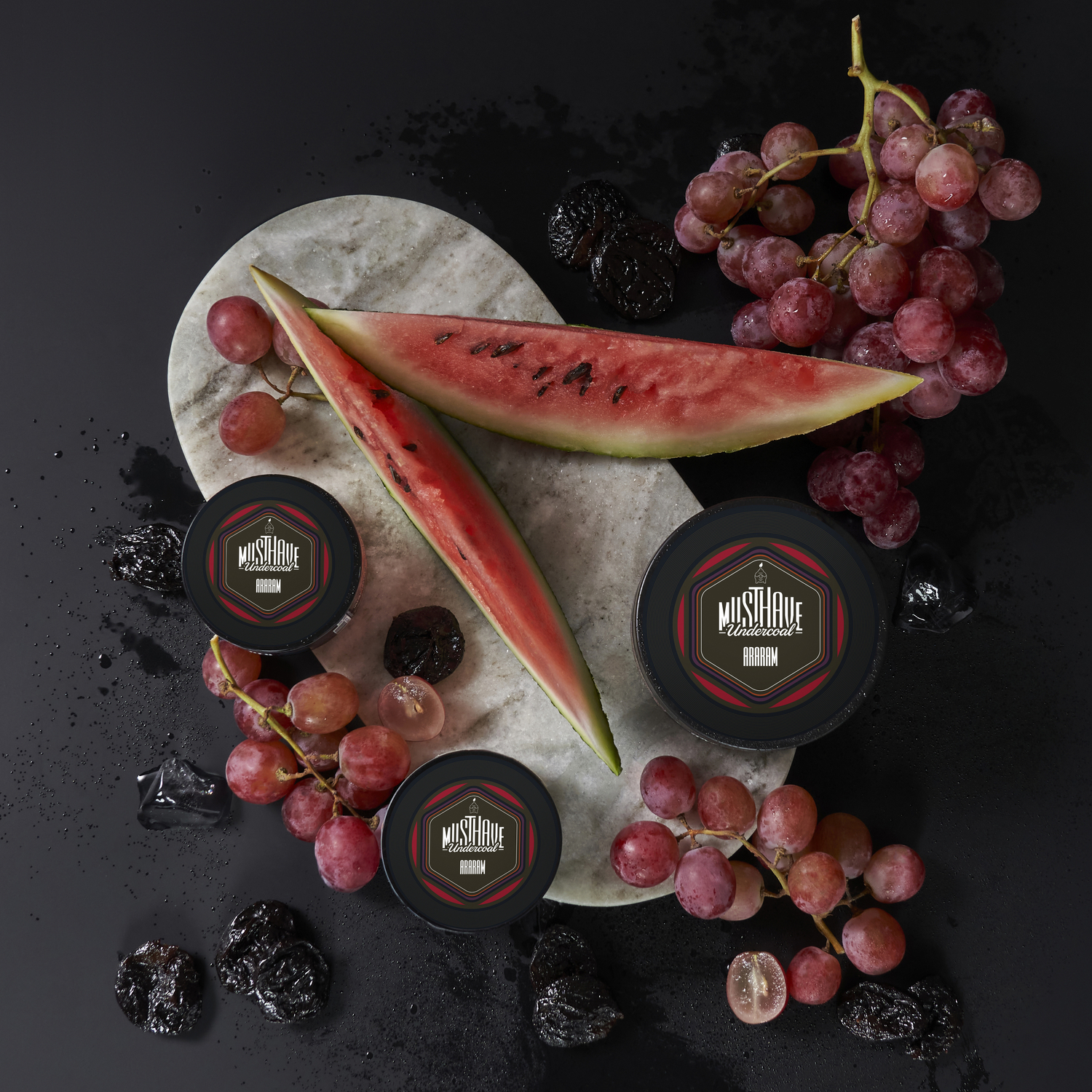 Восхитительное сочетание сладкого арбуза, сочного винограда и ароматного чернослива, приправленное листьями мяты